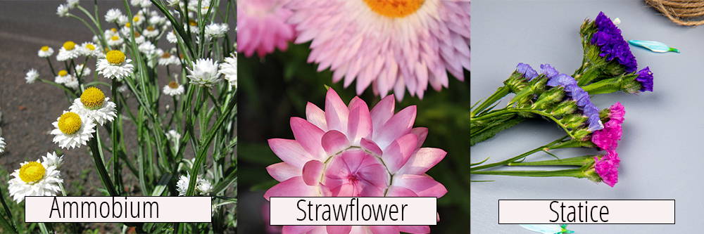 So what is the BEST source for dried flowers? Grow them yourself! As a flower farmer, I suppose this may sound "easy" for me to say, but I would strongly encourage any of you who have even a moderately green thumb to give it a try. A few flowers that dry well are available to purchase as plants from your local nursery, but many will require that you start them from seed. It's not hard...I promise! Because we all live in different climates, it is beyond the scope of this blog to give instructions for growing and drying flowers, but I will show you my top three favorite flowers to grow and dry that are simple to grow and dry like a dream. If you're up for it, do a bit of research and give "grow your own" a try!